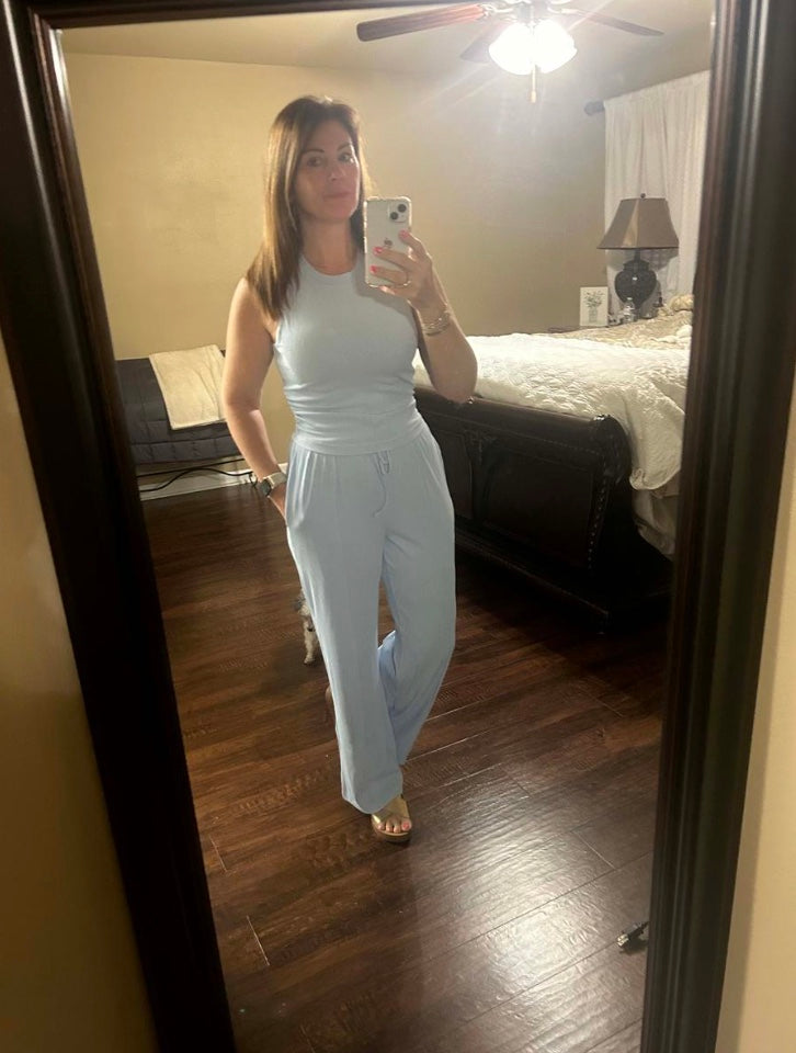 Spring Lounge Set - Cropped Tank & Flowy Palazzo Pants