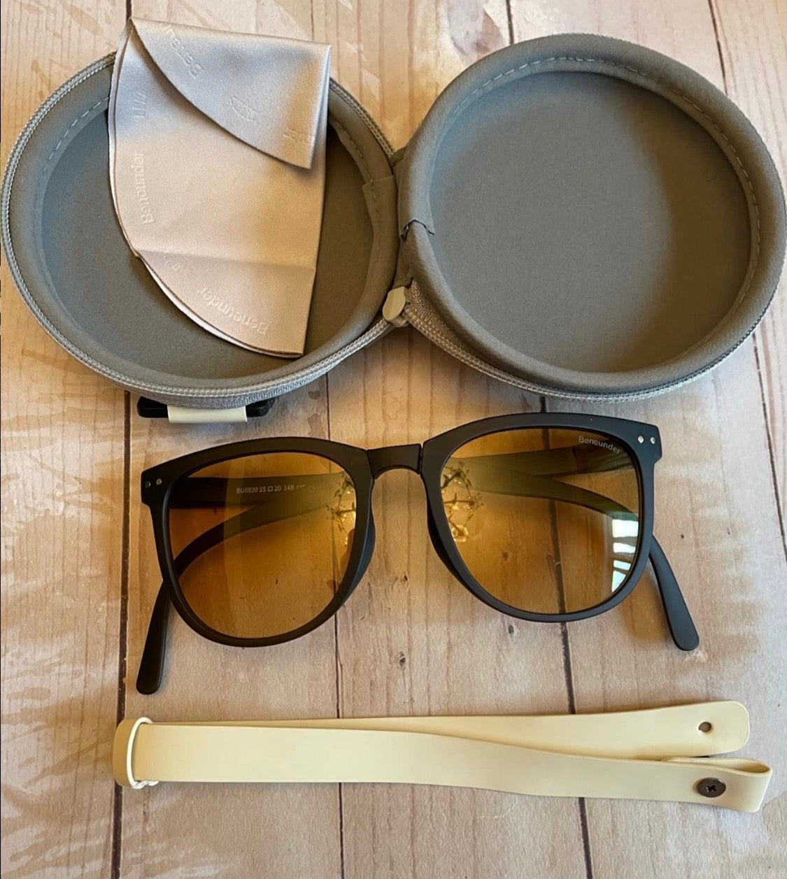 - Full‑size frames that fold into a tiny round case you can clip to your bag, belt loop, or keys.